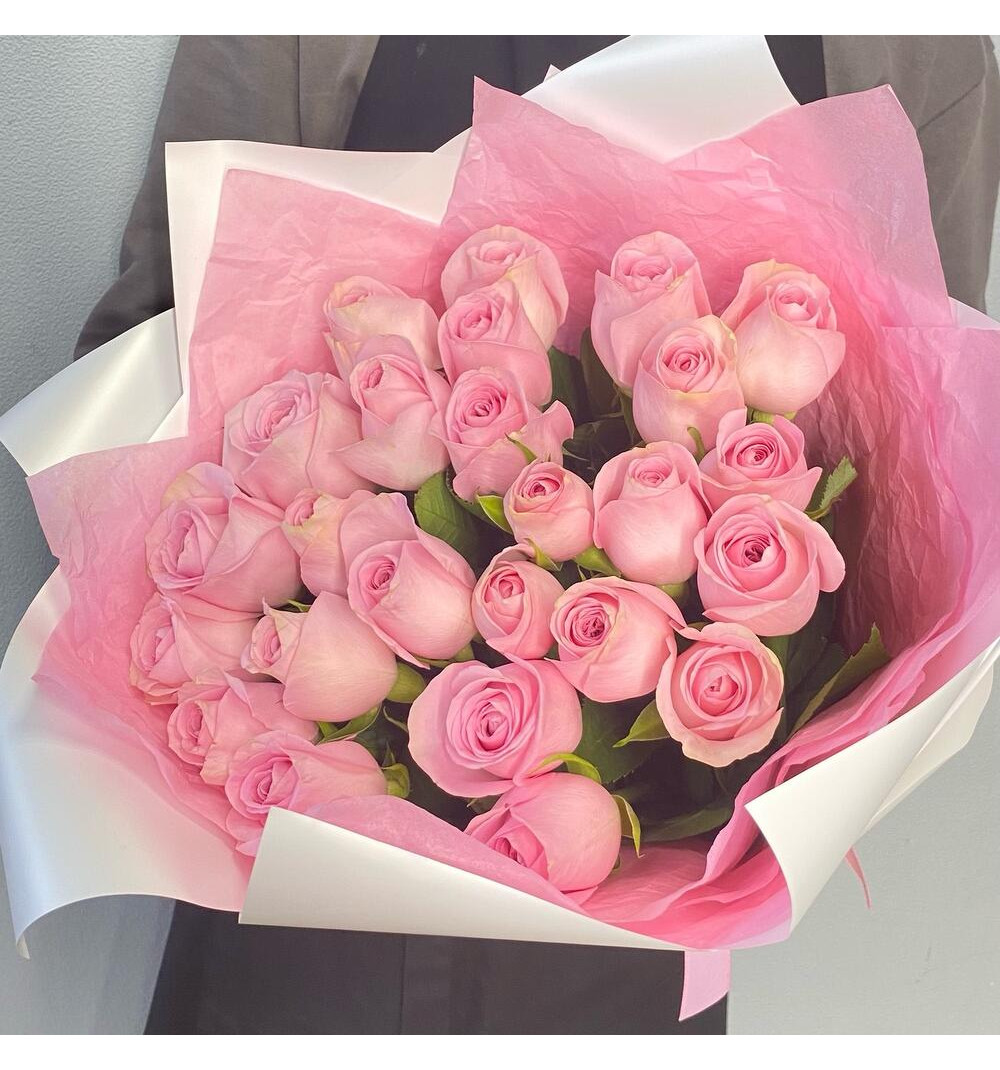 Этот букет воплощение нежности и изящества. Каждая роза в этой композиции испускает нежный аромат и символизирует нежные чувства и дружбу. Оттенки нежно-розовых роз создают умиротворяющую атмосферу и подчеркивают теплоту и заботу. Этот прекрасный букет станет отличным подарком для выражения ласковых чувств и создания моментов, которые останутся в сердце получателя на долгое время.